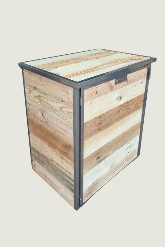 - Soit vous voulez qu’il se fonde dans le paysage et se fasse discret. Dans cas, habillez NATYW avec vos propres matériaux. Nous vous livrons le composteur nu, sans habillage et vous le personnalisez vous-même.